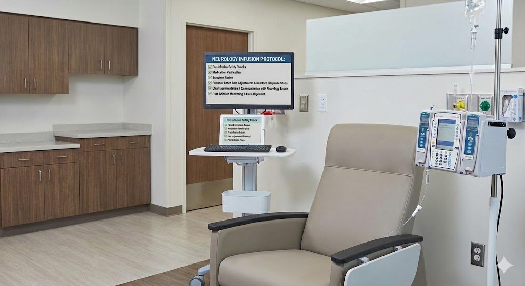 We provide neurologic infusion support under neurologist orders with careful pre-infusion safety checks, medication verification, and symptom review. Our team monitors vitals, infusion tolerance, and neuro-relevant concerns during and after therapy, using protocol-based rate adjustments and reaction response steps. We maintain clear documentation and communicate outcomes to neurology teams to support adherence, reduce treatment disruption, and keep care aligned across visits.